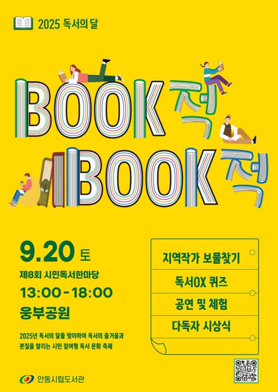 [무한뉴스=최진수 기자] 안동시립도서관이 ‘9월 독서의 달’을 맞아 9월 20일 오후 1시부터 6시까지 웅부공원에서 『제8회 Book적 Book적 시민독서한마당』을 개최한다.