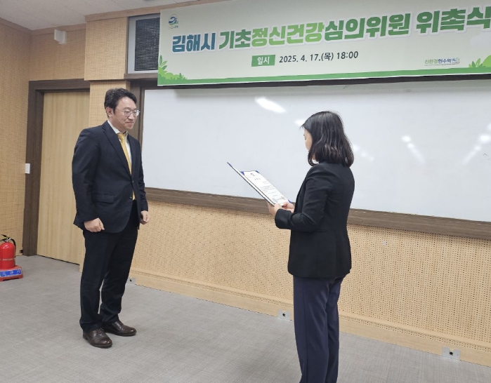 [무한뉴스=최진수 기자] 김해시는 지난 17일 김해시보건소에서 2025년 기초정신건강심의위원회 위촉식을 개최해 10명에게 위촉장을 수여했다고 18일 밝혔다.