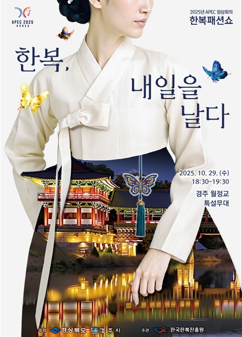 [무한뉴스=최진수 기자] 경상북도와 경주시는 29일 경주 월정교 수상 특설무대에서 ‘APEC 2025 KOREA 한복패션쇼’를 개최한다.