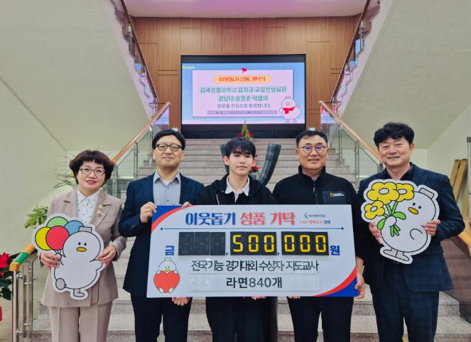 [무한뉴스=최진수 기자] 김해시는 2일 전국기능경기대회 수상자와 지도교사가 수상을 기념해 라면 840개(50만원 상당)를 기탁했다고 밝혔다.