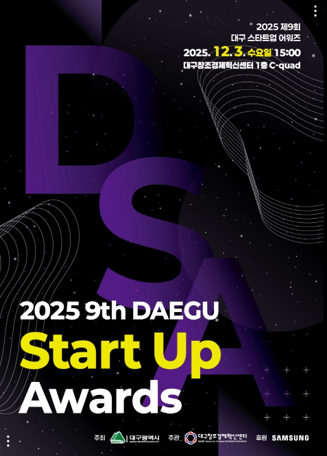 [무한뉴스=최진수 기자] 대구광역시는 12월 3일 오후 3시, 대구창조경제혁신센터 C-quad(1층)에서 ‘제9회 대구스타트업어워즈’를 개최하고, 지역 창업생태계를 빛낸 우수 스타트업 10개사와 창업지원 유공자 2명을 시상한다.