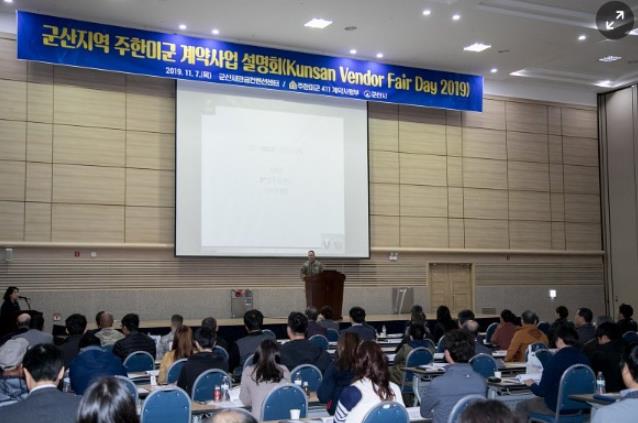 침체한 지역경제 활성화 방안으로, 군산시와 주한미군 411 계약사령부가 마련한 설명회에서는 우리 지역 업체의 주한미군 조달시장 진출을 돕기 위한 준비과정과 처리 절차에 대한 안내가 진행된다.