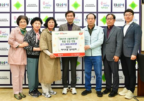 [무한뉴스=최진수 기자] 경산시게이트볼동부분회는 18일 경산시청을 방문하여 최근 산불 피해를 입은 이웃들에게 희망과 위로의 손길을 전하고자 성금 106만원을 기탁 했다.