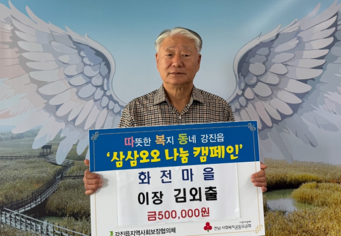 [무한뉴스=정민정 기자] 강진군 강진읍지역사회보장협의체가 주관하는 ‘삼삼오오 착한 기부 나눔 릴레이’ 캠페인에 강진읍 화전마을 김외출 이장이 29번째로 50만원을 기탁하며 지역사회에 또 한 번 따뜻한 감동을 전했다.