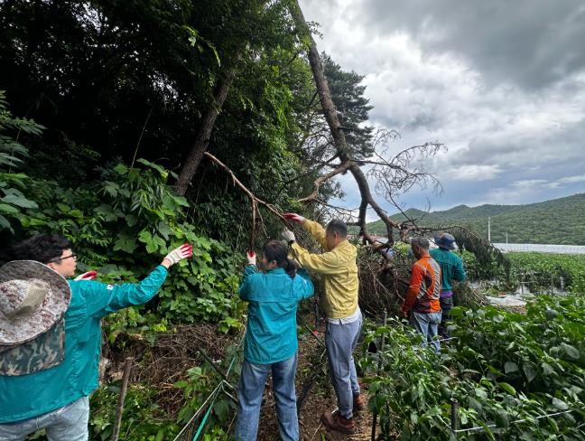[무한뉴스=정민정 기자] 고창군 아산면 주민행복센터 직원들이 최근 할머니의 고추밭 한가운데로 쓰러진 대형 소나무를 처리하며 주민 안전확보에 나섰다.