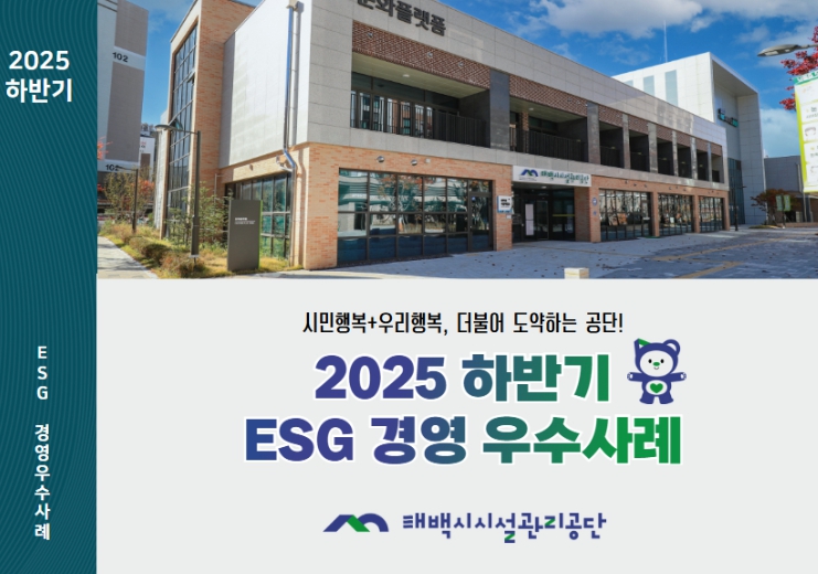 [무한뉴스=정민정 기자] 태백시시설관리공단은 2025년 하반기 동안 추진한 ESG 경영 주요 정책과 성과를 종합한 '2025 하반기 ESG경영 우수사례집'을 발간하고, 시민 체감형 ESG 경영 실천 사례를 공유한다고 밝혔다.