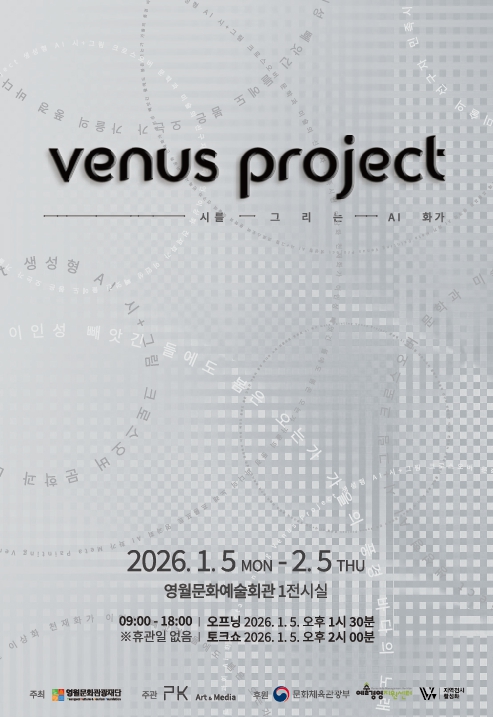 [무한뉴스=정민정 기자] (재)영월문화관광재단은 2026년 1월 5일부터 2월 5일까지 영월문화예술회관 제1전시실에서 생성형 AI 기반 디지털 시각예술전 'Venus Project'를 개최한다고 밝혔다.