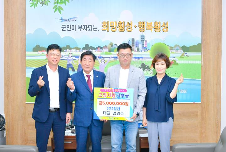 [무한뉴스=정민정 기자] ㈜원천 김영수 대표가 지난 29일 고향사랑기부금 500만원을 기부하며 지역사회를 위한 따뜻한 나눔을 실천했다.