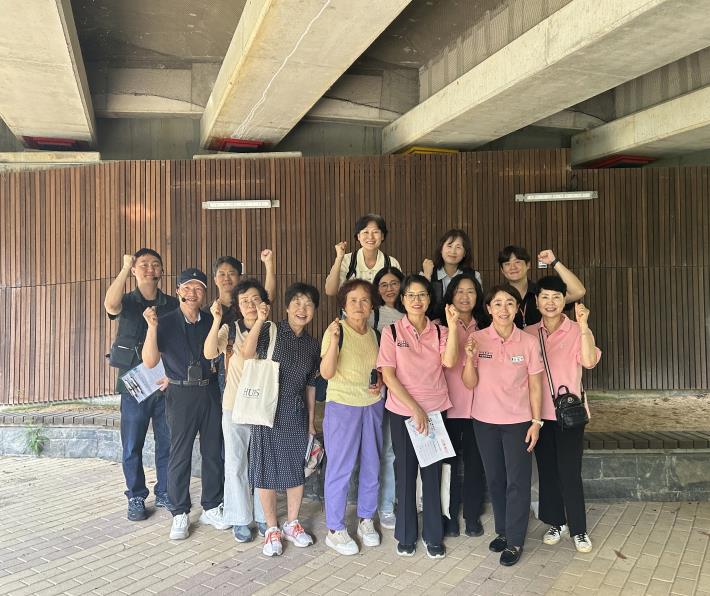 | ▲ 새빛 시설물 자율점검단이 영통구 광교1동 버들치2·3교를 점검하고 기념 사진을 촬영하고 있다. |