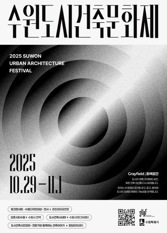 [무한뉴스=양현명 기자] 수원특례시는 10월 29일부터 11월 1일까지 정조테마공연장, 수원시미디어센터, 팔달문화센터 등에서 ‘2025 수원도시건축문화제’를 연다.