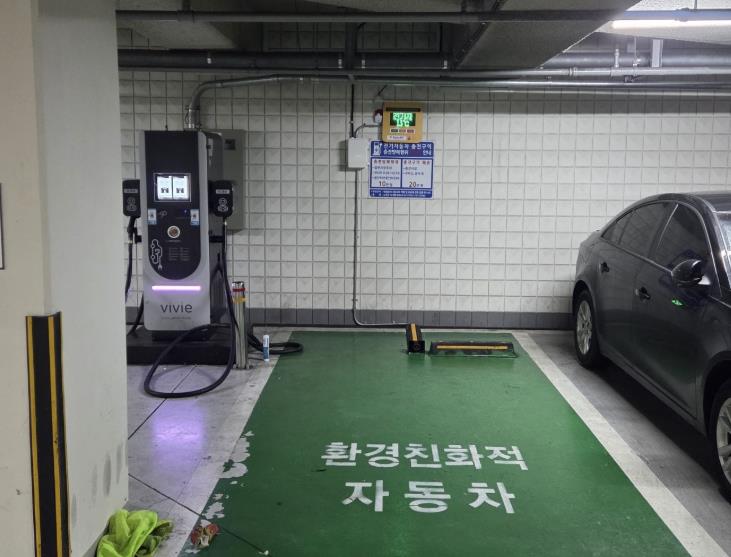 ▲ 월계구민체육센터 지하주차장 전기차 충전구역에 설치된 전기차 화재 예방 시스템(사진=노원구시설관리공단)