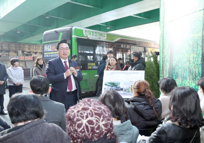 | ▲ 박일하 동작구청장이 지난 24일(수) ‘신대방역 자전거 주차장 경관개선 준공식’에 참석해 주민들 앞에서 경과보고를 하고 있다 |