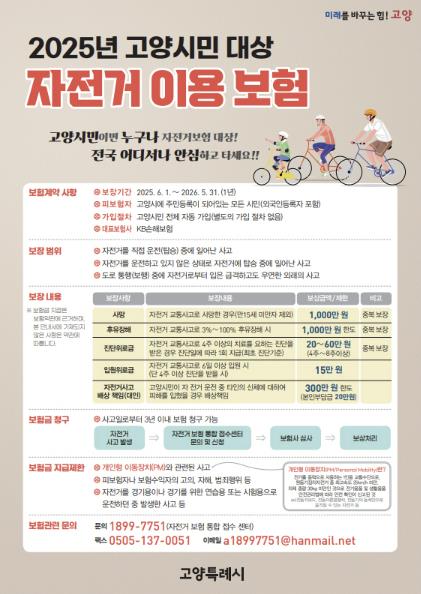 | ▲ ‘2025년 고양시민 대상 자전기 이용 보험' 안내문 |
