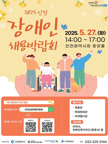 [무한뉴스=정승훈 기자] 인천광역시는 오는 5월 27일 인천시청 중앙홀에서 ‘인천 장애인 채용박람회’를 개최한다고 밝혔다.