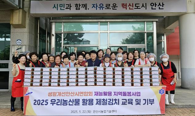이날 봉사는 생활개선안산시연합회 사무실에서 회원 40여 명이 참석한 가운데 진행됐다. 안산에서 생산된 친환경 농산물을 활용해 제철 김치 담그기 교육과 함께 열무김치를 담근 회원들은 안산시건강가정지원센터를 통해 김치 150통(450kg)을 전달했다.