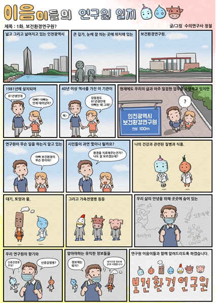 웹툰은 인천시 보건환경연구원 누리집 ‘연구원 소개 - 이음이들의 연구원 일지’ 메뉴에서 볼 수 있다.