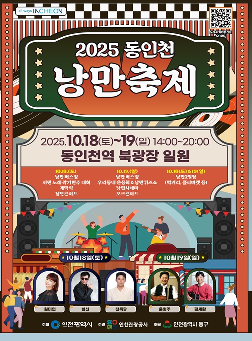[무한뉴스=정승훈 기자] 인천광역시는 오는 10월 18일부터 19일까지 이틀간 동인천역 북광장에서 ‘2025년 동인천 낭만축제’를 개최한다고 밝혔다.