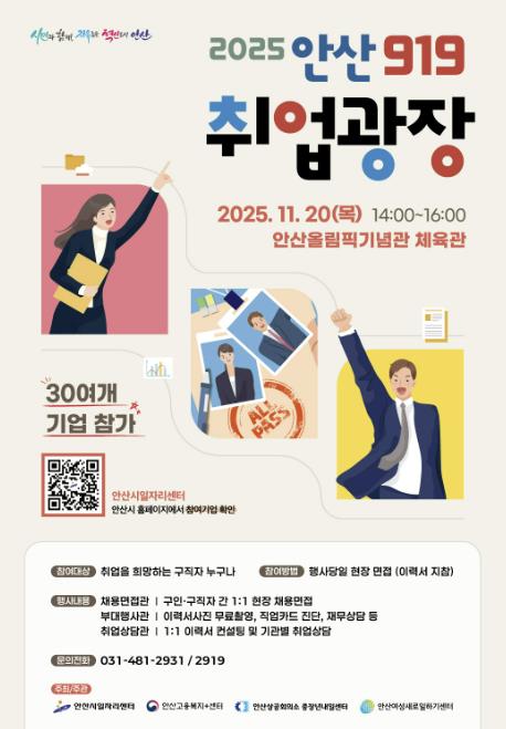 안산시, 올해 마지막 '안산 919 취업광장' 11월 20일 개최