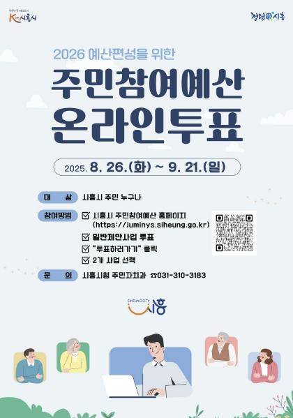 [무한뉴스=정승훈 기자] 시흥시가 2026년 예산편성을 위한 주민참여예산 일반제안사업 온라인투표를 8월 26일부터 9월 21일까지 실시한다.