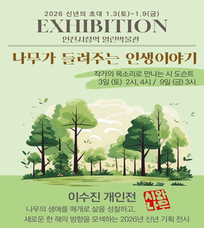 [무한뉴스=정승훈 기자] 인천광역시 시립박물관은 1월 3일부터 9일까지 인천지하철 1호선 인천시청역 내 ‘열린박물관’에서 대관전시 ‘나무가 들려주는 인생 이야기’개인작가 전시를 개최한다고 밝혔다.