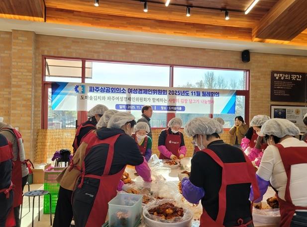 [무한뉴스=정승훈 기자] 파주시는 지난 17일 파주상공회의소 여성경제인위원회가 ‘사랑의 김장 담그기 나눔 행사’를 통해 파주시 취약계층을 위한 김장김치 10kg 500상자를 기탁했다고 밝혔다.