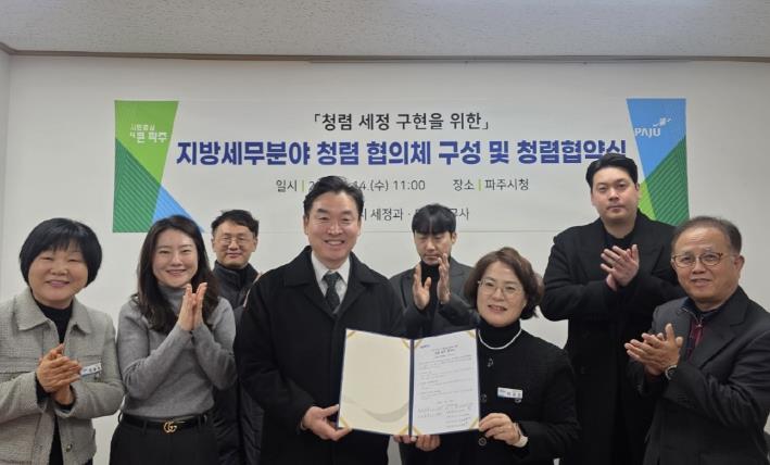 [무한뉴스=정승훈 기자] 파주시는 지난 14일 파주지역세무사회(마을세무사)와 함께 청렴 문화의 정착과 확산을 위한 민관 청렴협의체를 구성하고, 청렴 실천을 위한 협약을 체결했다고 밝혔다.