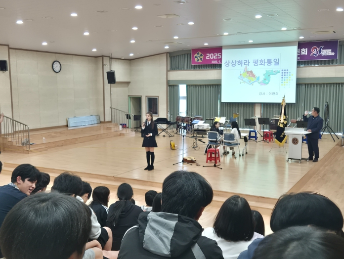 이날 행사에는 학생과 지도교사 등 150여명이 참석했으며, 탈북 강사 이현희 씨를 초청해 ‘상상하라 평화통일’을 주제로 강연을 진행했다.