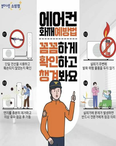 또한 낮 시간대 기온이 높고 전력 사용이 집중되는 시간에 화재가 빈번하게 발생하는 경향을 보이고 있어, 주기적인 실외기 주변 청소와 전선 상태 점검, 발화성 물질 제거 등의 사전 점검이 반드시 필요하다고 강조했다.
