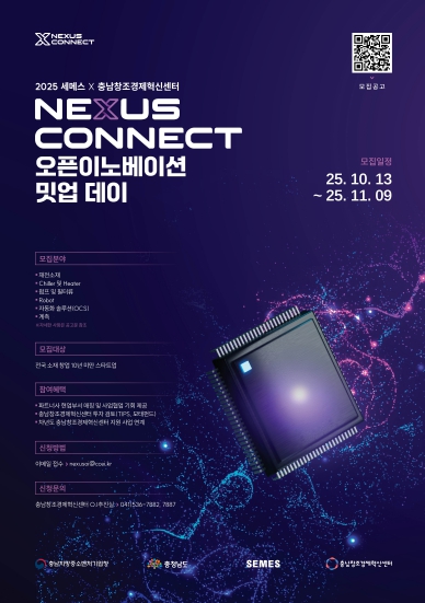 [무한뉴스=정민정 기자] (재)충남창조경제혁신센터와 세메스(주)는 반도체·디스플레이 장비 혁신을 이끌 유망 스타트업을 발굴·육성하기 위해 ‘2025 세메스 × 충남창조경제혁신센터 Nexus Connect 오픈이노베이션 밋업 데이’ 참여 기업을 11월 9일까지 모집한다.
