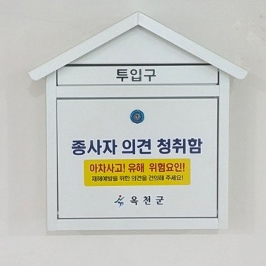 [무한뉴스=정민정 기자] 옥천군은 종사자의 안전·보건을 보다 체계적으로 관리하고, 현장의 다양한 목소리를 폭넓게 수렴해 군정에 적극 반영하기 위해 군청 및 읍·면사무소 등 주요 공공시설 16개소에 총 21개의 종사자 의견청취함을 설치·운영한다고 밝혔다.