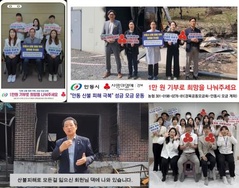 [무한뉴스=최진수 기자] 안동시 지역사회 곳곳에서 산불피해 극복을 위한 1만 원 성금 모금에 시민의 주도적 참여가 활발하게 이어지고 있다.