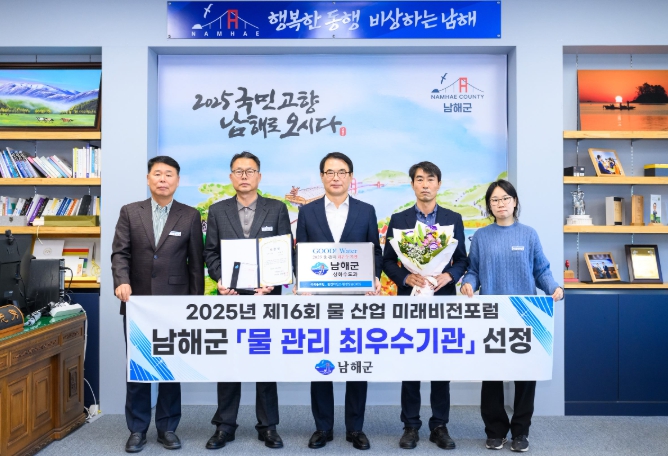 [무한뉴스=최진수 기자] 남해군은 최근 부산 벡스코에서 열린 ‘2025년 제16회 물 산업 미래비전포럼’에서 ‘물 관리 최우수기관’으로 선정됐다.