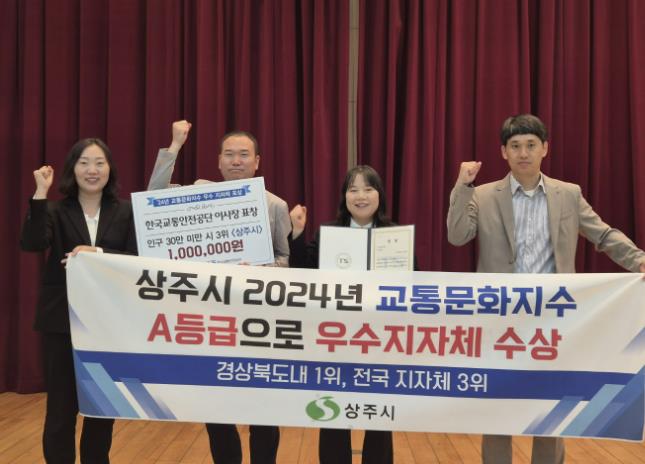 교통문화지수는 국토교통부가 매년 전국 229개 기초 지자체를 대상으로 지자체의 교통안전 행정노력도, 운전행태, 보행행태 등에 대한 객관적 조사를 통해 지자체별 교통문화 수준을 분석·평가하여 지역 교통문화 의식을 나타내는 대표적인 지표로, 상주시는 지난 2021년 42위로 D등급을 받는 데에 그쳤으나, 2022년 38위, 2023년 14위로 B등급을 받았고 마침내 2024년 A등급을 받으며 인구 30만 미만 시 그룹 49개 지자체 중 경북도 내 1위, 전국 순위 3위로 수상하게 됐다.