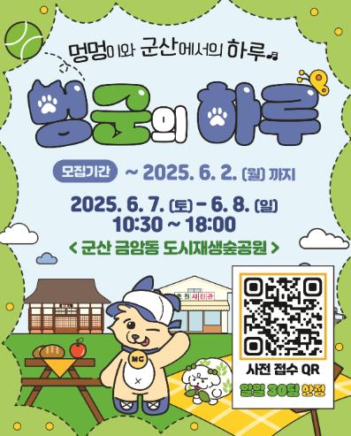 프로그램 참여는 군산시 공식 사회관계망(SNS) 계정(블로그, 페이스북, 인스타그램)의 ‘멍군의 하루’ 게시글에 있는 QR부호(코드)를 통해 신청할 수 있으며, 참가비는 반려견 1마리당 10,000원이다.