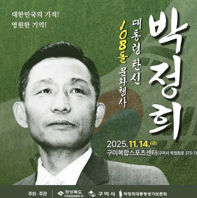 올해 박정희 대통령 탄신108돌 문화행사는 대통령 리더십 특강, 사진전시회 등 시민들이 함께 어울릴 수 있는 다채로운 문화행사들로 구성됐으며, 박정희대통령 사진전시(생가 민족중흥관/~11.23.)와 역사자료관 기획전시(역사자료관 2층 전시실/~26.1.4.) 등이 지속된다.