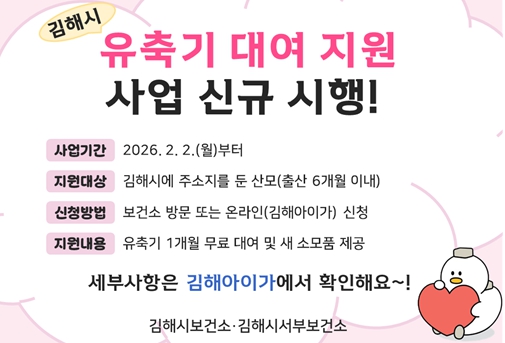 | ▲ 김해시, 2월부터 ‘유축기 대여 지원’ |