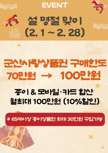 | ▲ 명절 맞아 군산사랑상품권 구매 한도 100만 원 상향 |