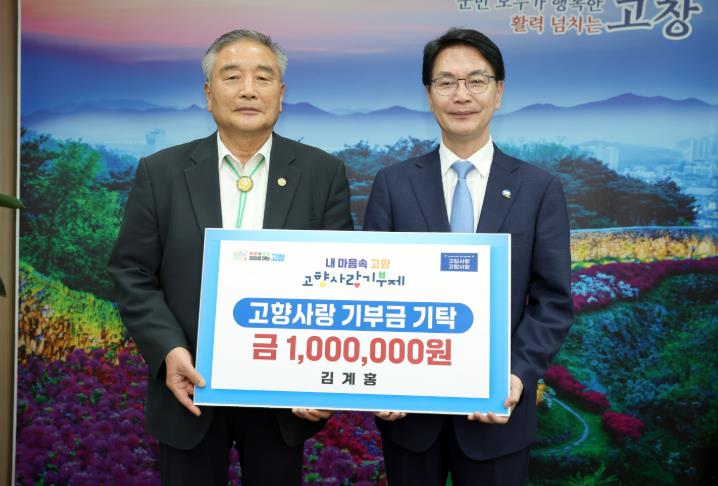 김계홍 이사장은 “고향인 고창군의 발전을 위해 약소하지만 힘을 보태기 위해 고향사랑기부금을 기탁하게 됐다”며 “많은 출향인들의 참여로 고향사랑기부제와 고창이 함께 성장하고 풍요로워지길 바란다”고 말했다.