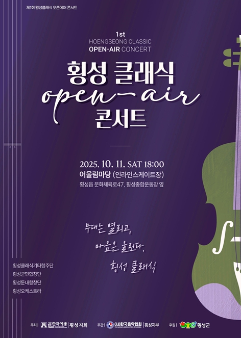 [무한뉴스=정민정 기자] 횡성군민에게 깊은 음악적 감동을 선사할 ‘제1회 횡성 클래식 오픈에어 콘서트’가 오는 11일 오후 6시, 횡성 어울림마당(인라인스케이트장)에서 열린다.
