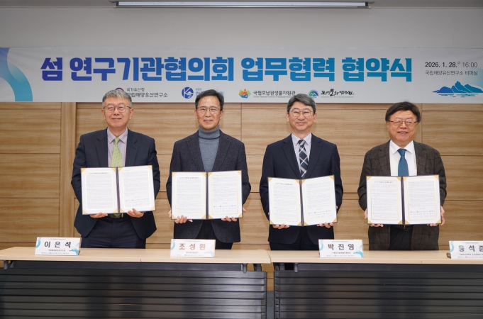 [무한뉴스=정민정 기자] 기후에너지환경부 산하 국립호남권생물자원관(관장 박진영)은 국립해양유산연구소, 한국섬진흥원, 국립목포대학교 도서문화연구원과 함께 2026년 1월 28일 국립해양유산연구소(전남 목포시 소재)에서 '섬 연구기관 협의회' 출범을 위한 업무협약을 체결했다.