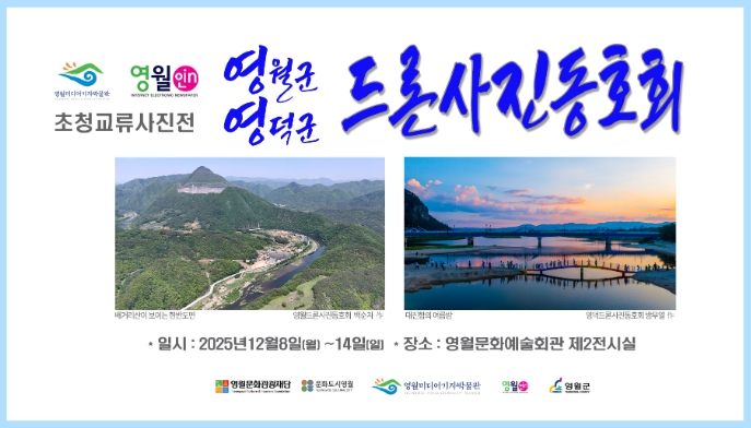 이번 전시는 영월과 영덕 두 지역의 드론 사진작가들이 함께하는 첫 교류전으로, 각 지역을 대표하는 자연경관과 생활 풍경을 하늘 위 시선으로 담아낸 작품들이 공개된다.