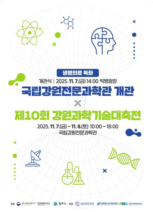 [무한뉴스=정민정 기자] 제10회 강원과학기술대축전이 오는 7일부터 8일까지 원주시 태장동 국립강원전문과학관 일원에서 개최된다.