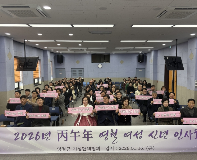 [무한뉴스=정민정 기자] 영월군여성단체협의회(회장 김미자)는 1월 16일, 여성회관 2층 대강당에서 여성계 인사 130여 명이 참석한 가운데 ‘2026년 영월 여성 신년인사회’를 개최했다.