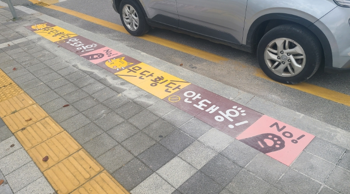 | ▲ 친근한 디자인 보도블록으로 무단횡단 예방 |
