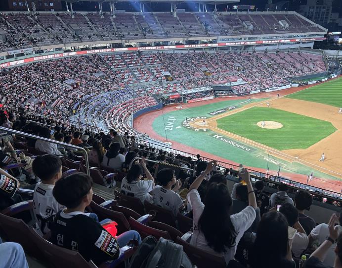 | ▲ 수원시 드림스타트 아동 및 가족이 kt위즈 야구 경기를 관람하고 있다. |