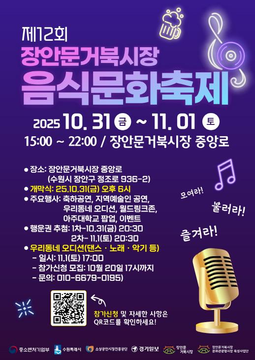 [무한뉴스=양현명 기자] 수원 장안문거북시장 중앙로에서 10월 31일부터 11월 1일까지 ‘제12회 장안문거북시장 음식문화축제’가 열린다.