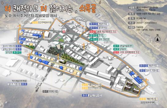 특히 주민생활복지서비스 제공을 위한 거점공간 조성, 자율주택정비사업과 민간정비 지원, 골목길 정비사업을 통해 마을에 숨결을 불어넣어 대표 정주여건 개선 선도마을로 재탄생 시킨다는 계획이다.