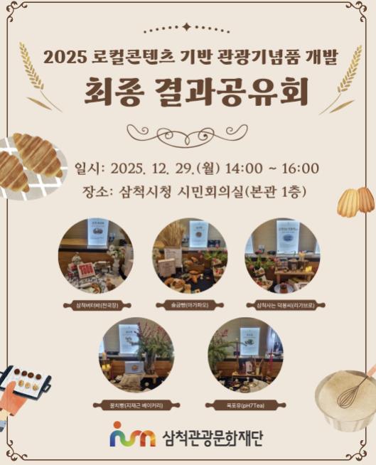 [무한뉴스=정민정 기자] 삼척관광문화재단은 '2025 로컬콘텐츠 기반 관광기념품 개발 최종 결과공유회'를 개최하고, 녩로컬콘텐츠 기반 관광기념품 개발’사업을 통해 선정·개발된 관광기념품의 성과를 공유할 계획이라고 밝혔다.