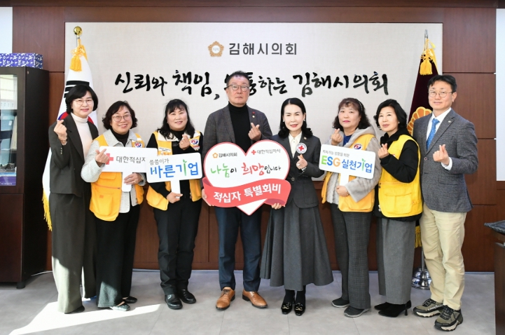 안선환 의장은 “어려운 이웃과 재난 현장에서 묵묵히 헌신하고 있는 적십자사의 노고에 깊은 감사의 말씀을 전한다” 며 “김해시의회는 시민과 함께 나눔의 가치를 실천하며 따뜻한 지역사회를 만드는 데 최선을 다하겠다”고 말했다.