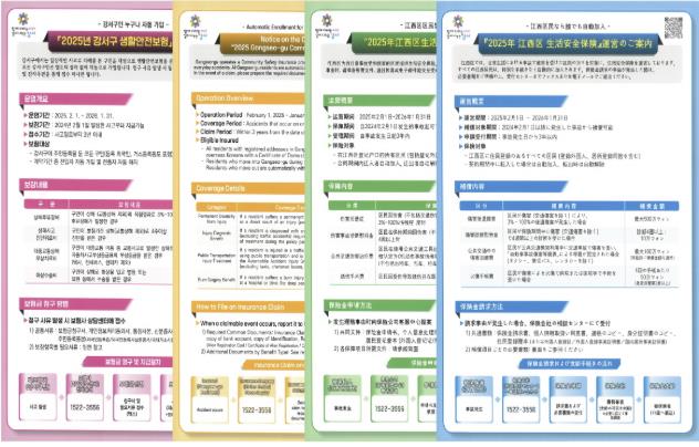 [무한뉴스=정승훈 기자] 서울 강서구는 ‘생활안전보험’ 안내문을 한국어, 영어, 중국어, 일본어 4개 국어로 제작했다고 밝혔다.